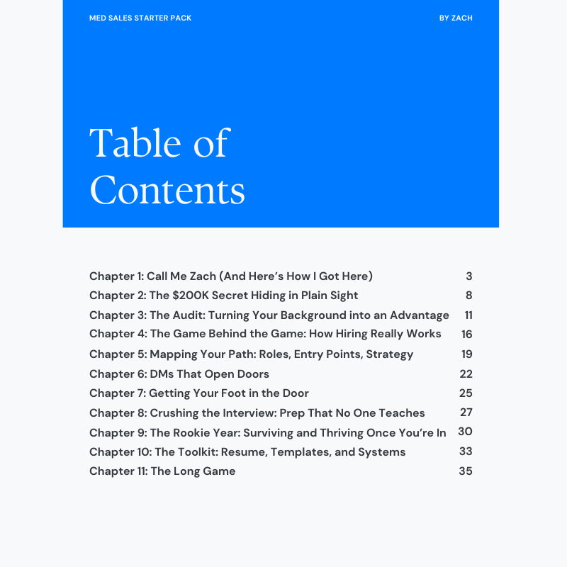 I’m Zach. I broke into medical device sales with zero experience, landed my first medical sales role, and now get paid to walk into operating rooms instead of cubicles.